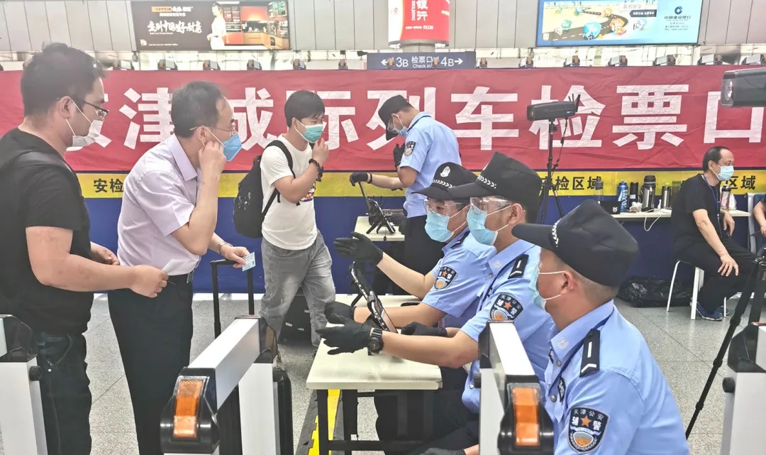 天津火車站和高鐵站的進京二次安檢通道入口處,民警正在使用海鄰科公司的X3和X3Pro移動警務終端,進行信息采集和安全檢查。