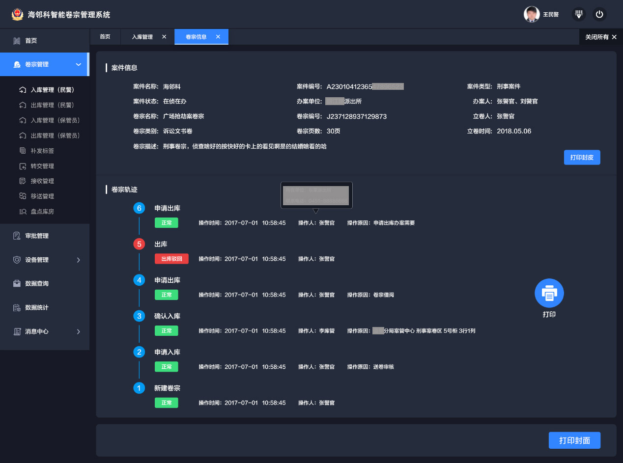 堅(jiān)持讓專業(yè)的人做專業(yè)的事,配備專職管理人員,將偵查人員從事務(wù)性工作中解脫出來(lái),專注于訊問辦案。通過(guò)信息化管理手段,實(shí)現(xiàn)卷宗的安全保管、軌跡追溯,切實(shí)保障立卷及時(shí)、保管安全、出入留痕。