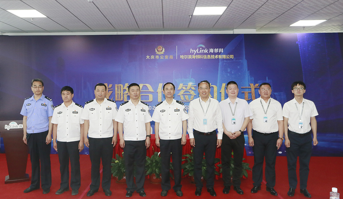 大慶市公安局黨委委員、科信辦主任嚴發(fā)全,法制支隊、社區(qū)警務支隊、科信處主要負責同志,及海鄰科公司相關負責人參加簽約儀式。