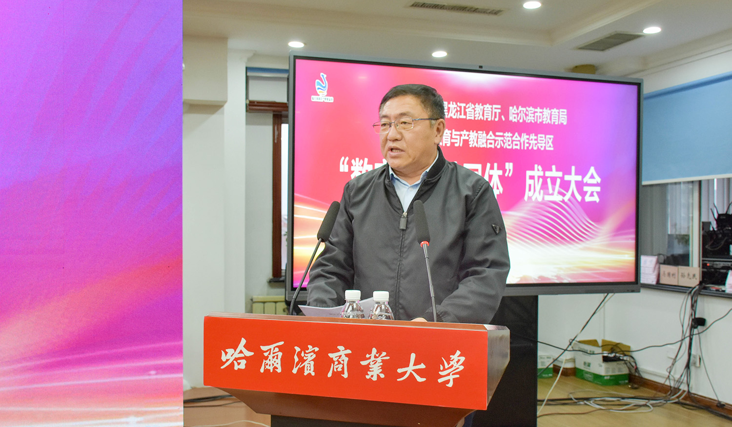 哈爾濱松北區(qū)副區(qū)長王媛、中國(黑龍江)自由貿(mào)易試驗區(qū)哈爾濱片區(qū)管委會副主任王凱,哈爾濱商業(yè)大學(xué)校長鄭秋鹛、副校長王巍、副校長趙大偉,松北區(qū)工信局、民社局、教育局、發(fā)改局、商務(wù)局、文旅局及區(qū)委宣傳部,深哈產(chǎn)業(yè)園,海鄰科公司等相關(guān)單位負(fù)責(zé)同志和工作人員出席大會。