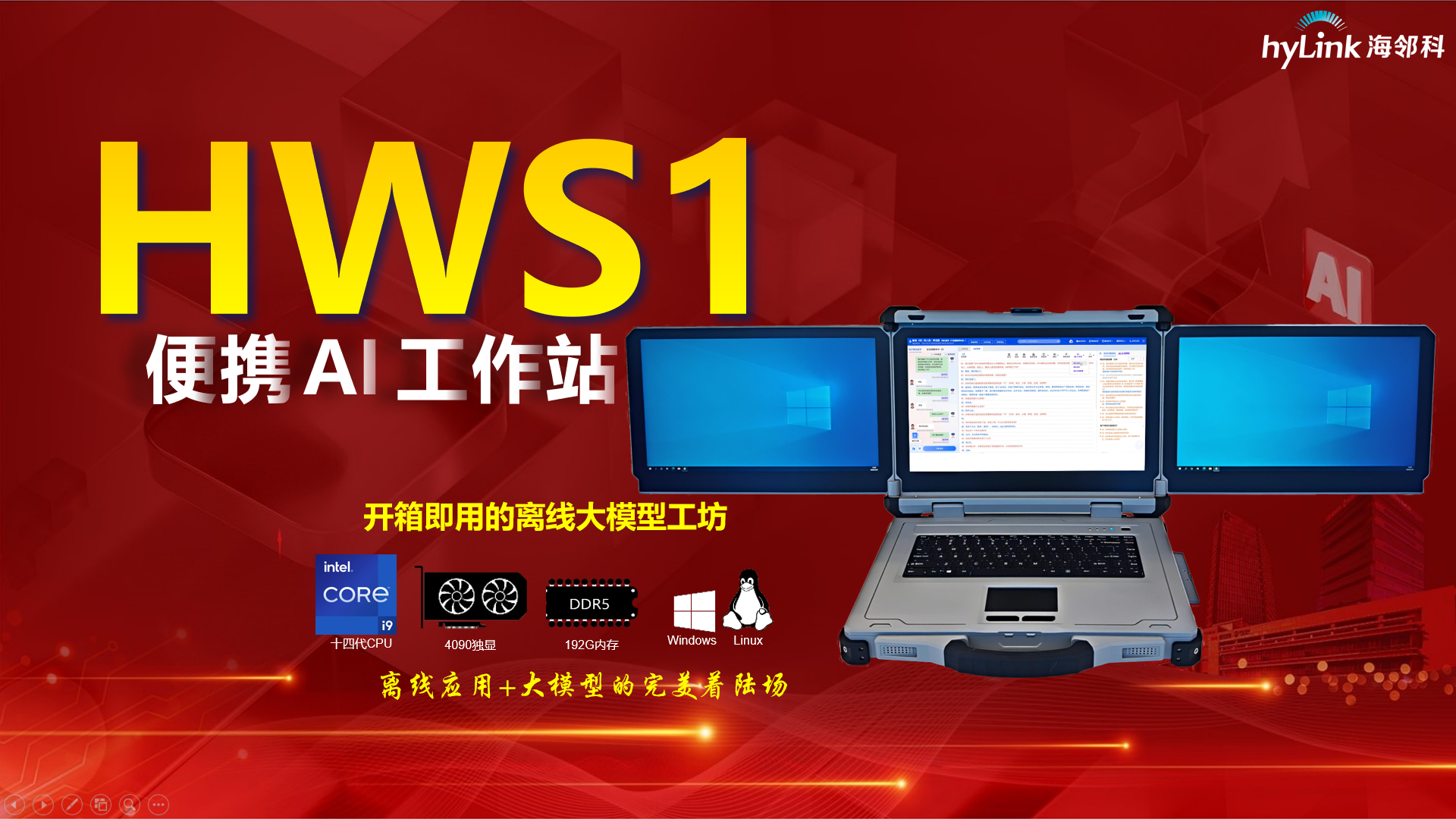 另一款明星產(chǎn)品 —— 便攜 AI 工作站同樣亮點十足。海鄰科針對行業(yè)大模型開發(fā)及應(yīng)用領(lǐng)域企業(yè)的痛點,在算力精準(zhǔn)配置,交互界面定制化,場景化物理適配三方面進(jìn)行深入研究,量身打造了這款便攜式端側(cè)大模型工作站。它具備高算力、大內(nèi)存、高適配等顯著特點,如同一個可隨身攜帶的離線大模型工坊,真正實現(xiàn)開箱即用。面對大模型應(yīng)用過程中普遍存在的隱私泄露、實時性不足、網(wǎng)絡(luò)依賴三大難題,便攜 AI 工作站給出了完美解決方案,為企業(yè)在 AI 領(lǐng)域的探索與創(chuàng)新保駕護(hù)航,助力行業(yè)智能化發(fā)展突破瓶頸,開啟全新篇章。